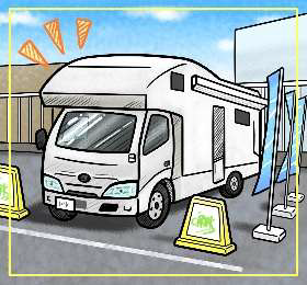 コンビニの駐車場スペースを利用したRV パークが実験運用中です。1台1泊が3,000 円程度の料金で、電源やごみ袋の提供もあり、夜も常時人がいる安心感が好評です。